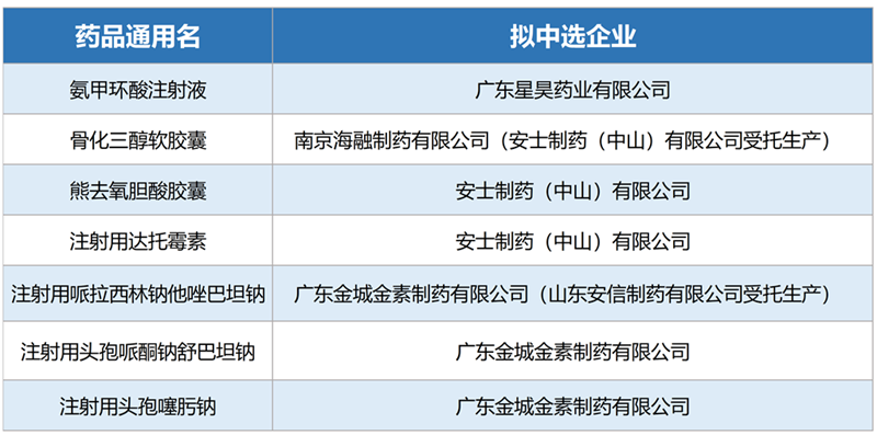全國藥品集中采購擬中選結果表