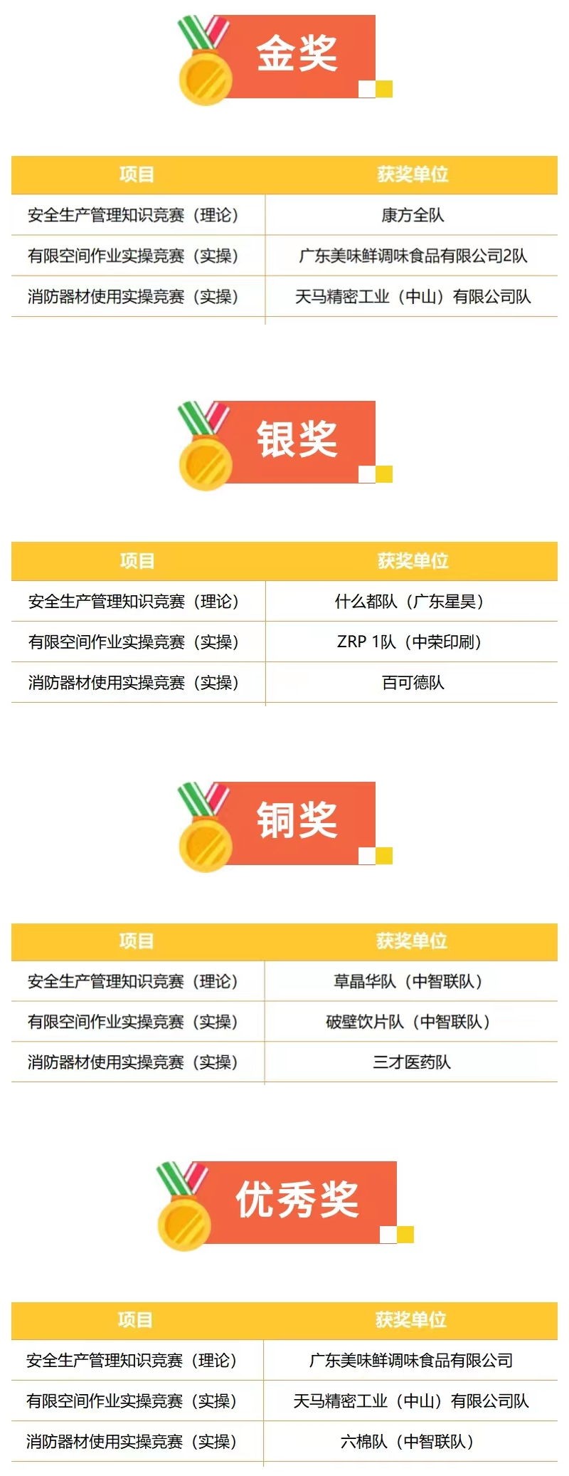 經(jīng)過一天的激烈角逐,三個賽項分別評選出金獎、銀獎、銅獎、優(yōu)秀獎各3隊: