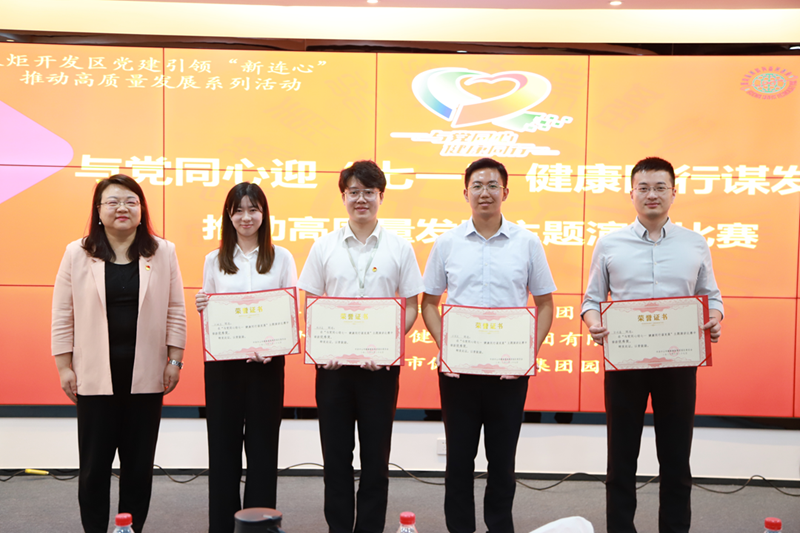 為深入貫徹黨的二十大精神,以實(shí)際行動(dòng)迎接建黨102周年,激勵(lì)集團(tuán)全體黨員干部職工進(jìn)一步統(tǒng)一思想、凝心聚力、對(duì)標(biāo)趕超,奮力開(kāi)創(chuàng)集團(tuán)高質(zhì)量發(fā)展新局面,健康基地集團(tuán)園區(qū)黨委于6月27日舉辦“與黨同心迎‘七一’ 健康同行謀發(fā)展”推動(dòng)高質(zhì)量發(fā)展主題演講比賽。火炬開(kāi)發(fā)區(qū)組織人事辦副主任王少凱、火炬開(kāi)發(fā)區(qū)黨群服務(wù)中心主任李慧、中山港街道團(tuán)工委副書(shū)記邱學(xué)松、健康基地集團(tuán)園區(qū)黨委書(shū)記、總經(jīng)理萬(wàn)鶴群等集團(tuán)領(lǐng)導(dǎo)班子參加此次活動(dòng)。