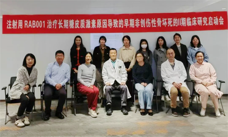 本次開(kāi)展的II期試驗(yàn)為評(píng)價(jià)注射用RAB001治療長(zhǎng)期糖皮質(zhì)激素原因?qū)е碌脑缙诜莿?chuàng)傷性骨壞死患者的有效性、安全性、耐受性及PK/PD關(guān)系的多中心、隨機(jī)、對(duì)照、盲態(tài)的Ⅱ期臨床試驗(yàn)。入組對(duì)象為長(zhǎng)期使用糖皮質(zhì)激素導(dǎo)致的股骨頭壞死的患者,預(yù)計(jì)入組160例受試者。RAB001的Ⅱ期臨床期試驗(yàn)由上海市第六人民醫(yī)院張長(zhǎng)青教授(國(guó)家骨科研究中心主任)和北京大學(xué)人民醫(yī)院(臨床免疫中心)粟占國(guó)教授共同牽頭,由四川大學(xué)華西醫(yī)院、北京大學(xué)第三醫(yī)院、北京積水潭醫(yī)院、中南大學(xué)湘雅二醫(yī)院、蘇州大學(xué)附屬第一醫(yī)院、廣州中醫(yī)藥大學(xué)第三附屬醫(yī)院等20多家全國(guó)知名醫(yī)院共同參與。