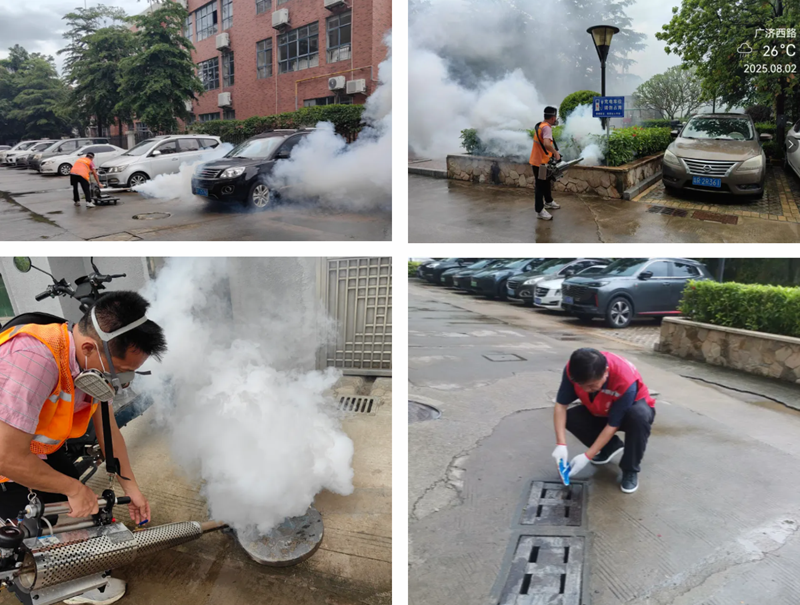 利用周末人少時段,健康基地專業(yè)消殺小隊再次來到智匯園、生物谷、灣區(qū)藥谷2號、電子城廠區(qū)、A區(qū)/B區(qū)廠房、聯(lián)東廠區(qū)、張一村/張三村代管物業(yè),聚焦車庫、排水溝、綠化帶、垃圾堆放處等重點蚊蟲孳生地,系統(tǒng)開展管網(wǎng)疏通、積水清除作業(yè)、科學投放預防性藥劑,從源頭降低蚊蟲密度。在園區(qū)人群活動區(qū)域,重點消殺標志廣場、籃球場、幼兒園、A區(qū)/B區(qū)宿舍、中心區(qū)宿舍的樓梯、器材、空調(diào)管道等死角,并在垃圾站周邊噴灑緩釋型殺蟲顆粒劑,為園區(qū)企業(yè)員工和社區(qū)居民構(gòu)筑起一道堅實的公共衛(wèi)生屏障。